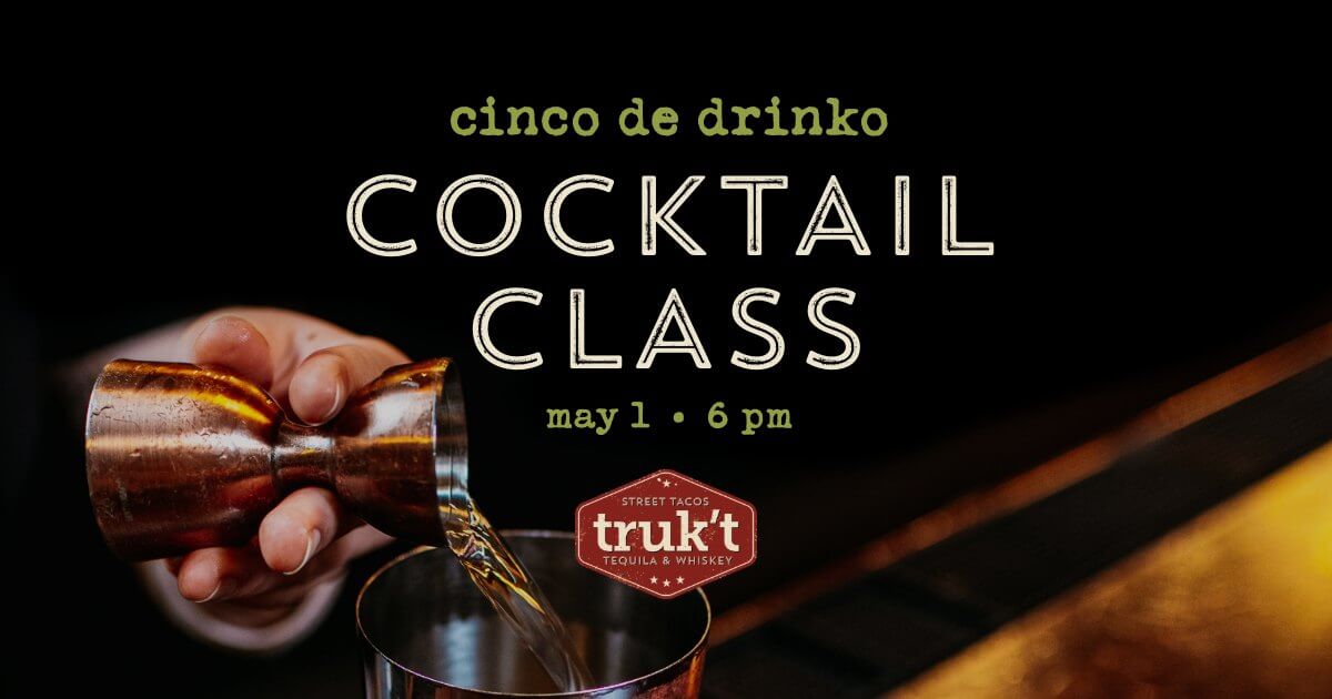 Join us for our Cinco de Drinko Cocktail Class on Friday, May 1st. You’ll mix up two of truk’t’s signature cocktails, build your perfect taco trio, and kick off Cinco de Mayo weekend the right way.