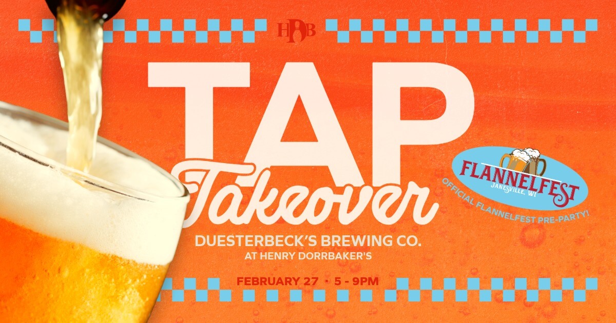 Join us Friday, February 27 from 5 to 9 PM for the Duesterbeck’s Brewing Company Tap Takeover, an official Flannelfest Pre-Party. Cold beer, free games, and chances to win VIP tickets all night long. Yes, it is that good.