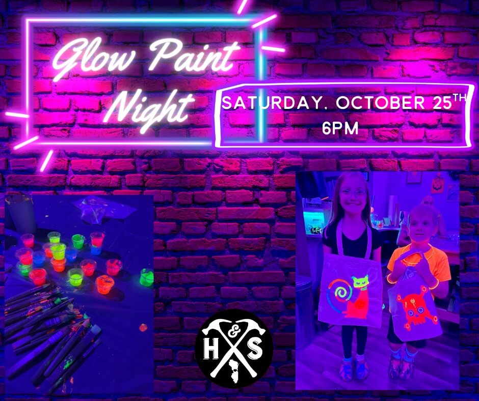 Join us for this one of a kind experience! We will be painting in the dark using special glow paint! How cool is that?! This is a kid and adult friendly event, recommended for ages 5 and up. We will be painting your choice of a trick or treat bag or set of three wooden Halloween shelf sitters. Don’t forget to dress in your brightest neon clothes and accessories for the ultimate experience! This registration is good for one person to attend.