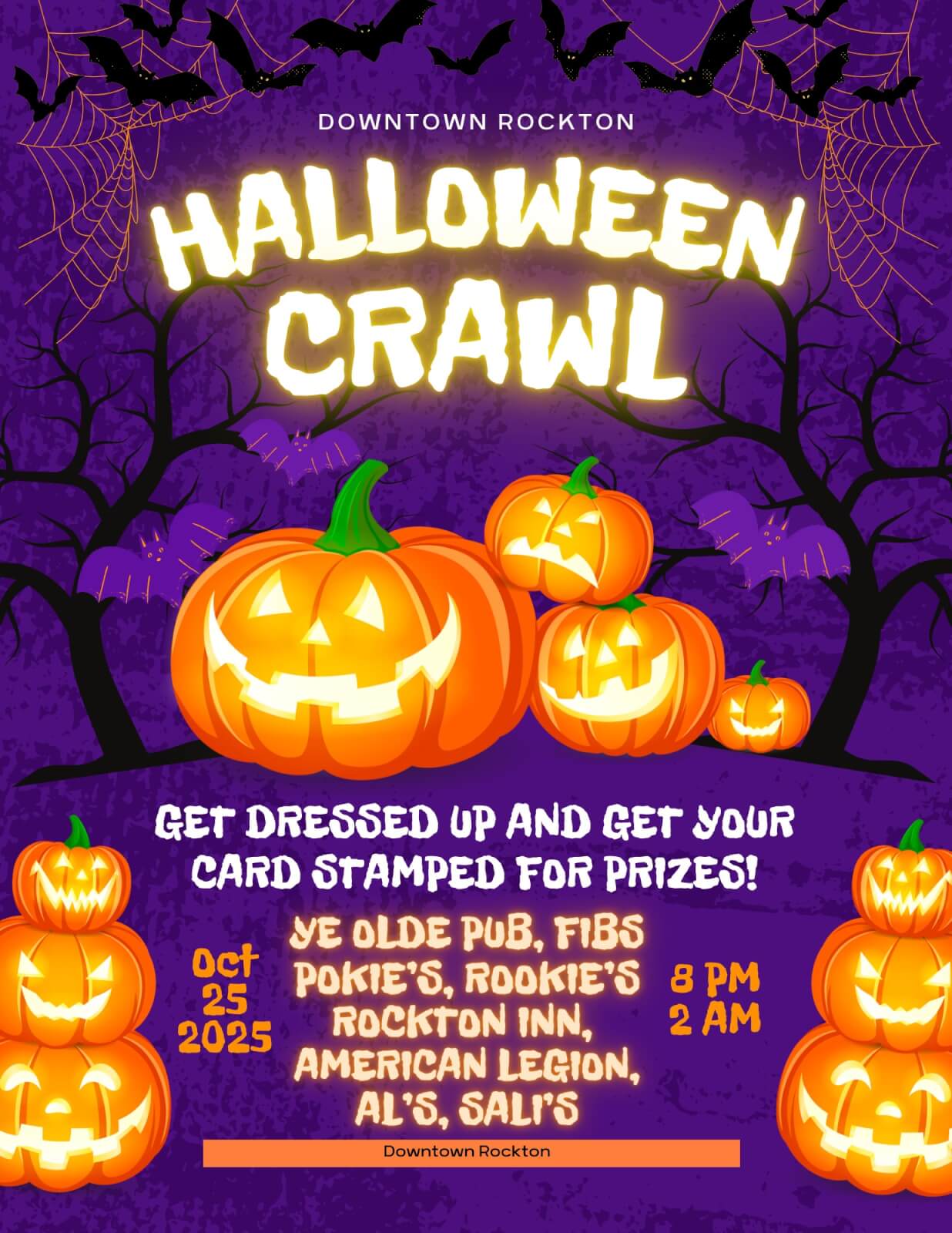 Get your costumes ready it’s time for the Rockton Halloween Pub Crawl! Get your card stamped for prizes at these establishments: