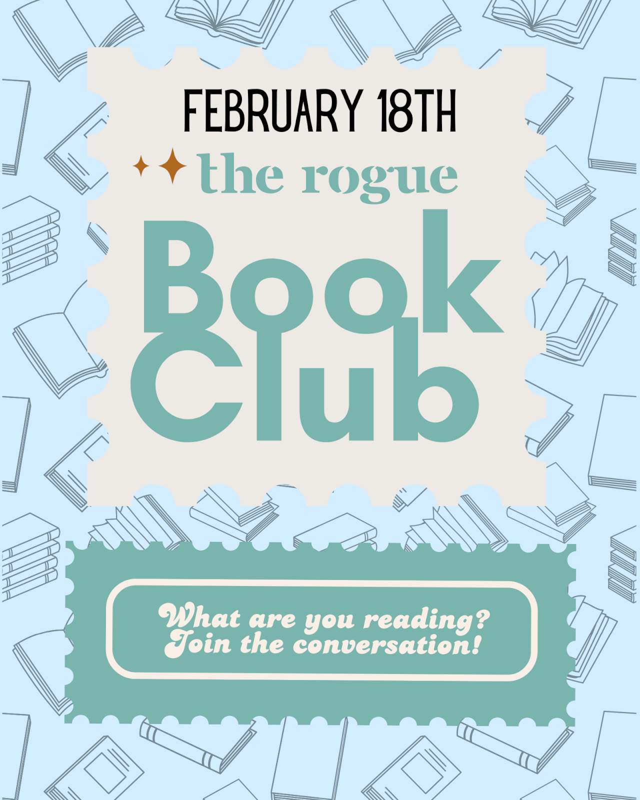 Join us for the next meeting of The Rogue Book Club — a gathering for readers of all kinds! This is a low-pressure, no-rules, come-as-you-are, read-what-you-want book club.